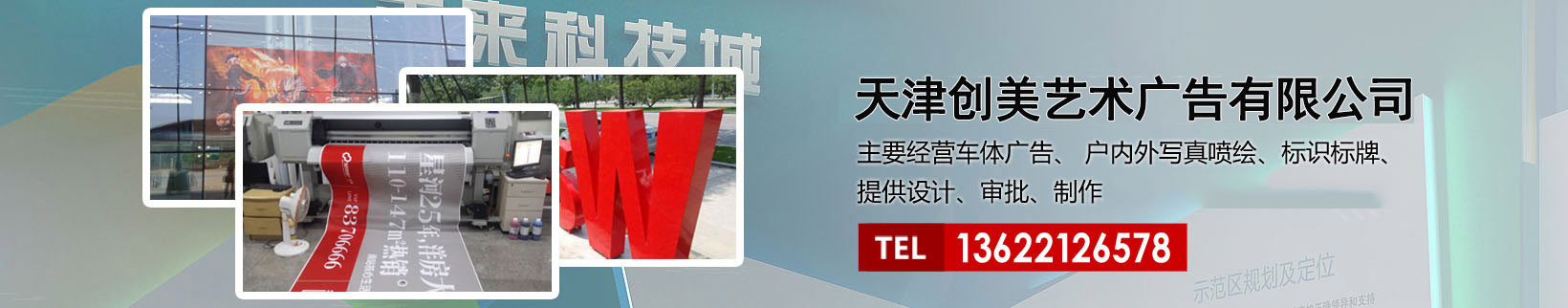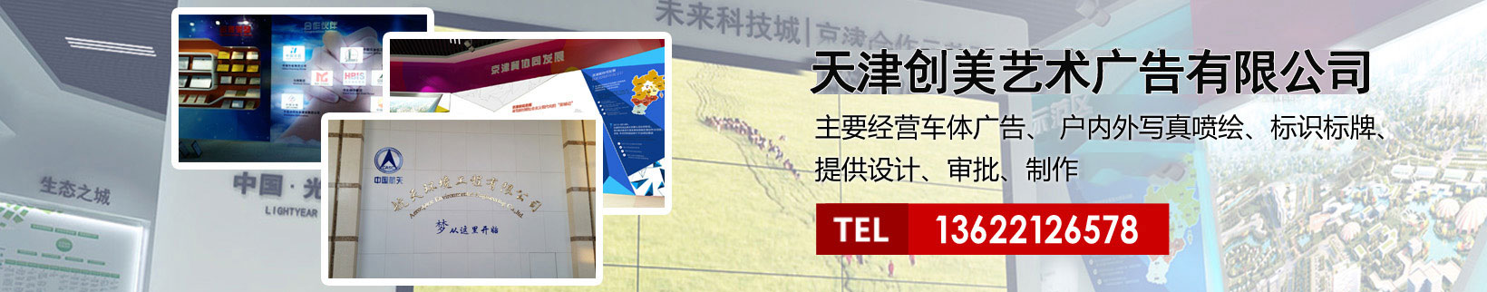 天津創(chuàng)美藝術(shù)廣告有限公司主要經(jīng)營車體廣告、 戶內(nèi)外寫真噴繪、標識標牌、提供設(shè)計、審批、制作、發(fā)布的服務(wù)。